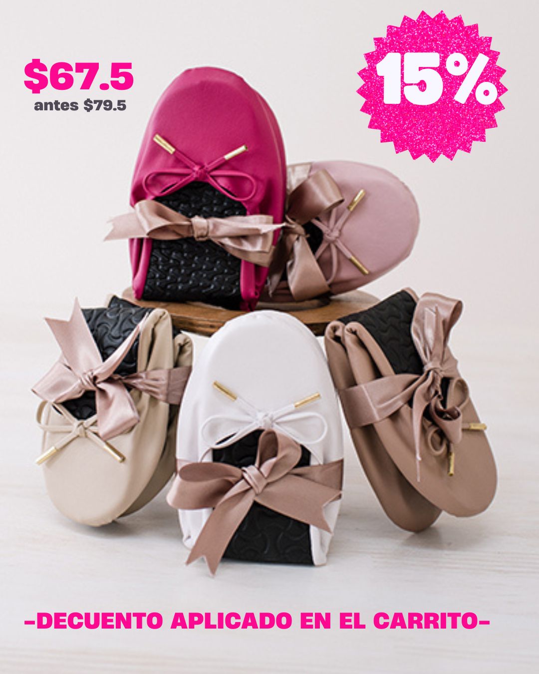 Materiales: Vinipiel , herraje en moño y suela antiderrapante.